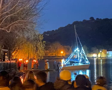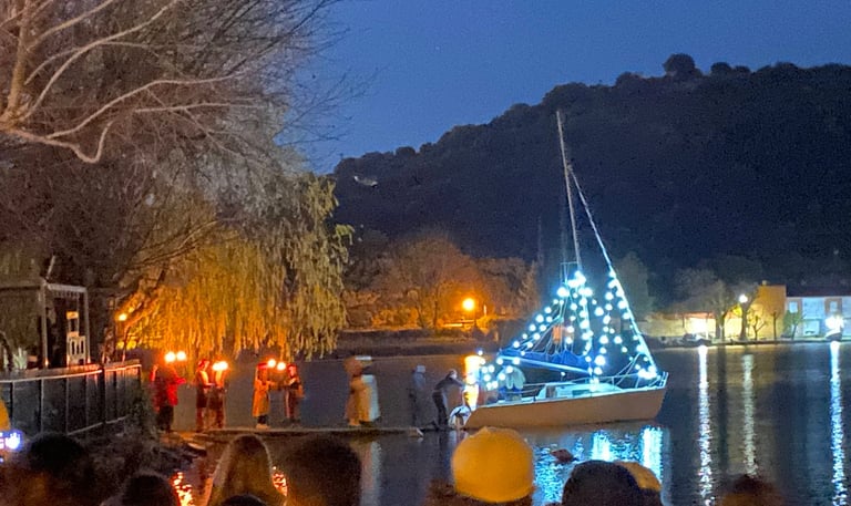 Los Reyes de Oriente llegan a Ruidera den barco por la laguna del Rey desde el lejano oriente